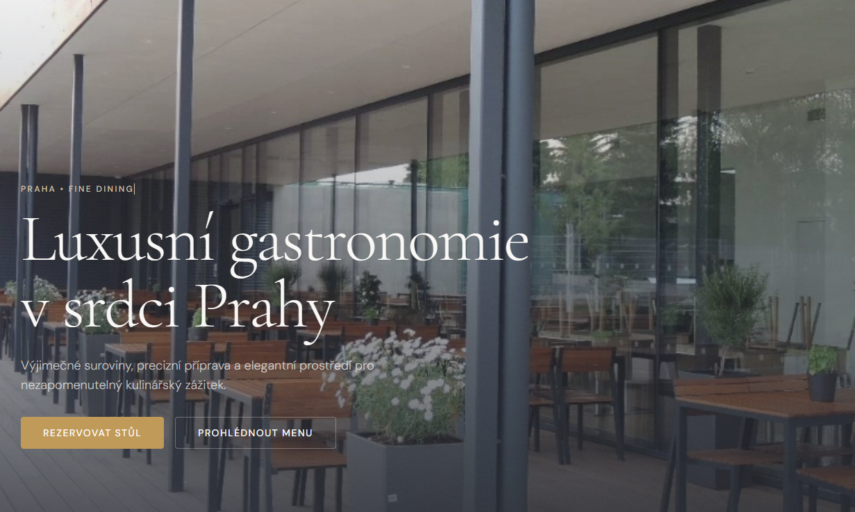 Web restaurace s rezervací a přehledným menu. Minimalistický design zaměřený na gastronomii.